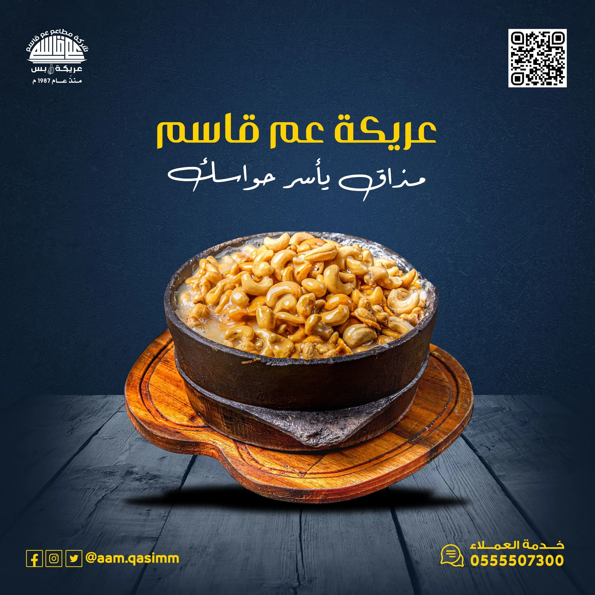 عم قاسم... أصالة الطعم في كل طبق! هل تبحث عن تجربة طعام فريدة تأخذك في رحلة إلى قلب المطبخ الأصيل؟ مطاعم عم قاسم هي وجهتك المثالية!
